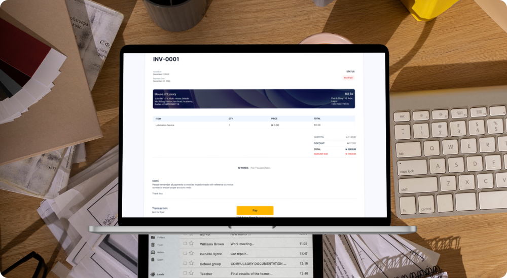 Generate professional invoices with your business branding, accept online payments, and track debtors effortlessly