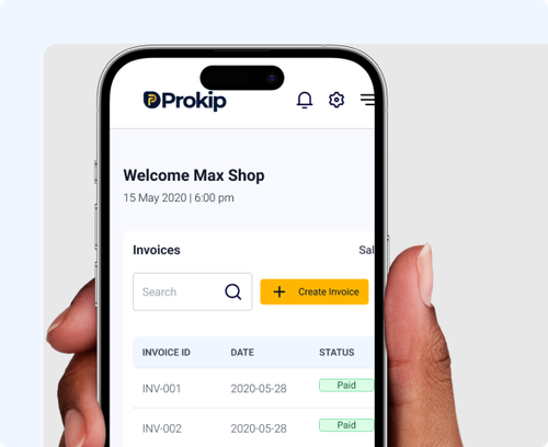 Facilitate revenue growth effortlessly with Prokip's Invoice feature. Effortlessly manage your business finances and redirect your focus towards building a thriving business.