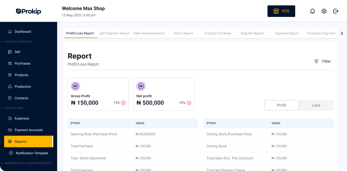 For a comprehensive understanding of your business's progress and to enhance sales, it's essential to analyze your sales performance. With Prokip's advanced reporting features, you can effortlessly access and generate reports using our intuitive sales reporting feature.